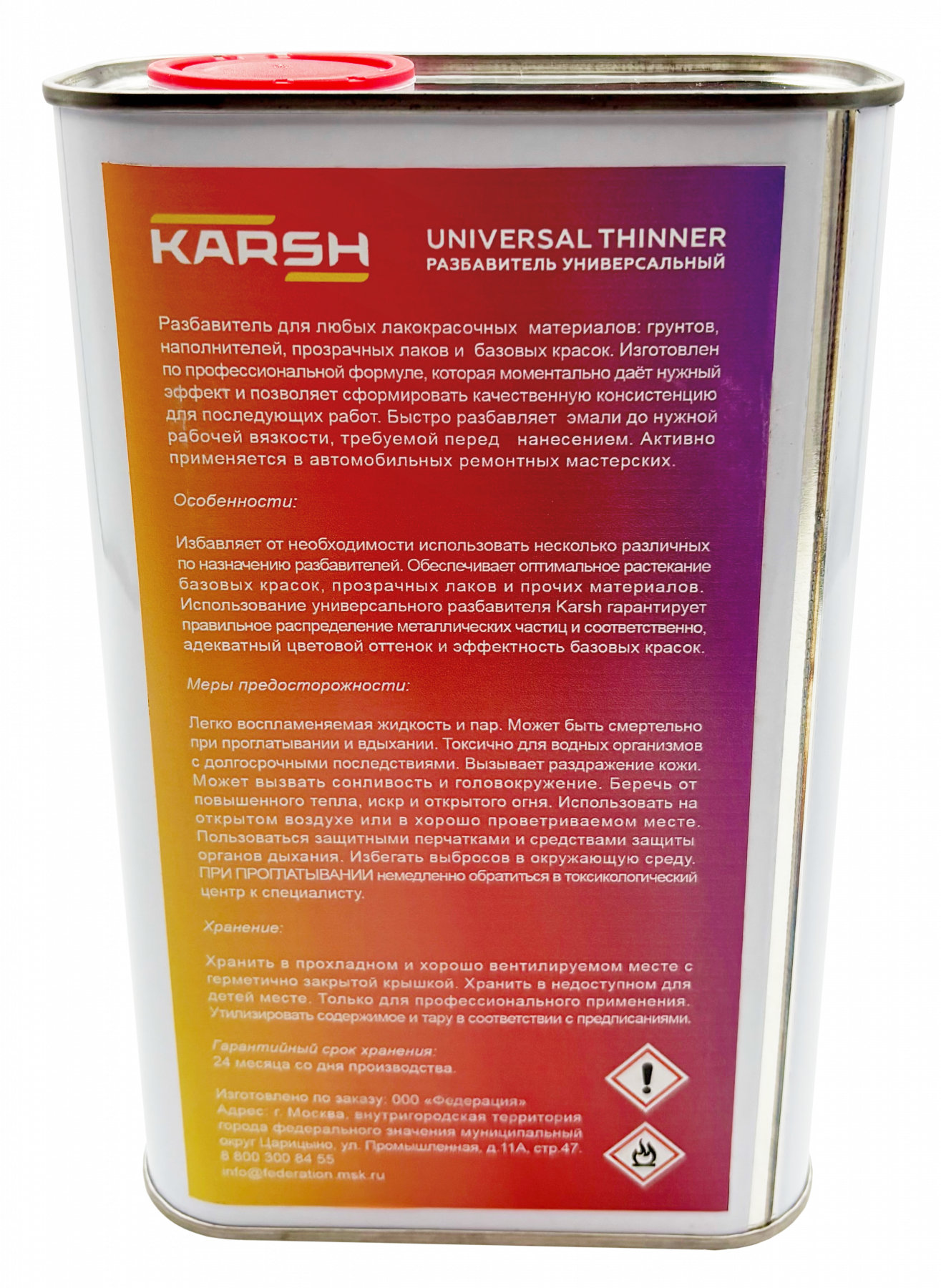 Обеспечивает оптимальное растекание базовых красок. Использование разбавителя Karsh гарантирует правильное распределение частиц и, соответственно, адекватный цветовой оттенок и эффективность базовых красок.